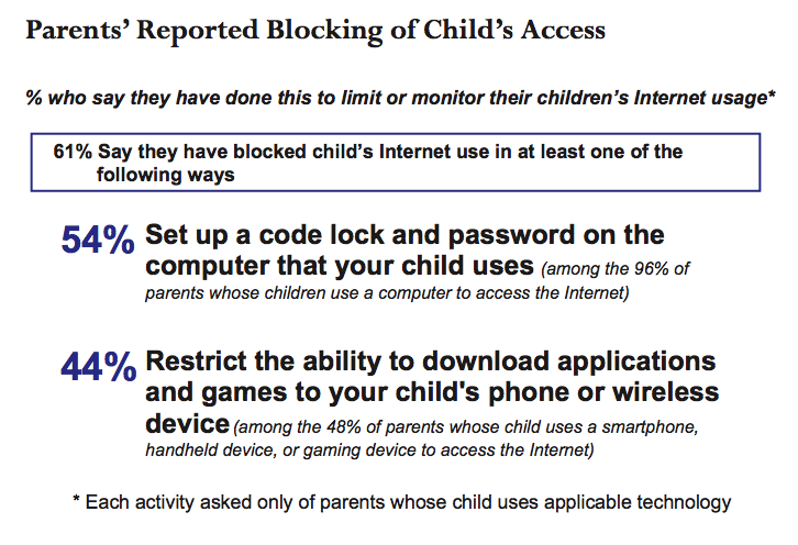 - Para orangtua merasa lebih menguasai tata acara melindungi anak-anak mereka ketika berinternet di komputer daripada harus mengawasi mereka di piranti bergerak.