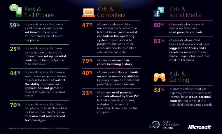 Penelitian dari FOSI (Family Online Safety Institute) ini mencoba melihat perilaku orang tua terhadap anak-anak mereka yang sudah aktif di internet. Keselamatan anak-anak di internet adalah hal penting, mengingat di internet apa saja bisa ditemukan, dan banyak di antaranya yang tidak layak dikonsumsi. Mengandalkan kebijakan pemerintah untuk memblokir situs yang dianggap tidak layak tidaklah cukup, karenanya peran orang tua sangat diharapkan dalam mencerdaskan anak mereka berselancar internet.